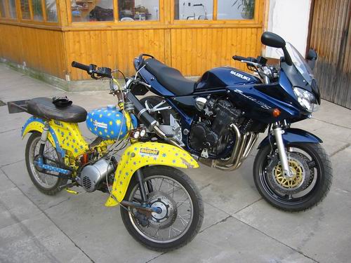 A képen van még egy SUZUKI GSF 1200 Bandit, az apukámé, bár néha elkapom egy körre, de azzal azért nem szoktam egykerekezni :P